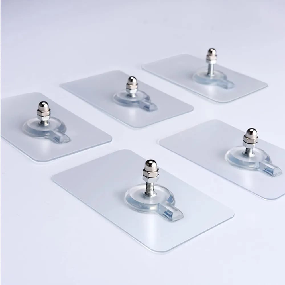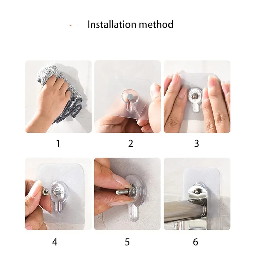 10Pcs Strong Self Adhesive Nails Poster Seamless Wall Hook Waterproof Durable Transparent Screw Hanger Hook for Kitchen BathroomProduct Details For 10Pca Strong Self Adhesive Nails Poster Seamless Wall Hook Waterproof Durable Transparent Screw Hanger Hook for Kitchen BathroomOrigin: CN(Origin)• Material: PVC• size: 6x6cm• package: 5 pairs wall Hanger Hook• 1: Self Adhesive Door Wall Hangers• 2: Suction holder• 3: Rack holder• 4: Razor Shaver Holder• 5: wall Hooks• 6: Sucker for Kitchen Bathroom• 7: Transparent Suction