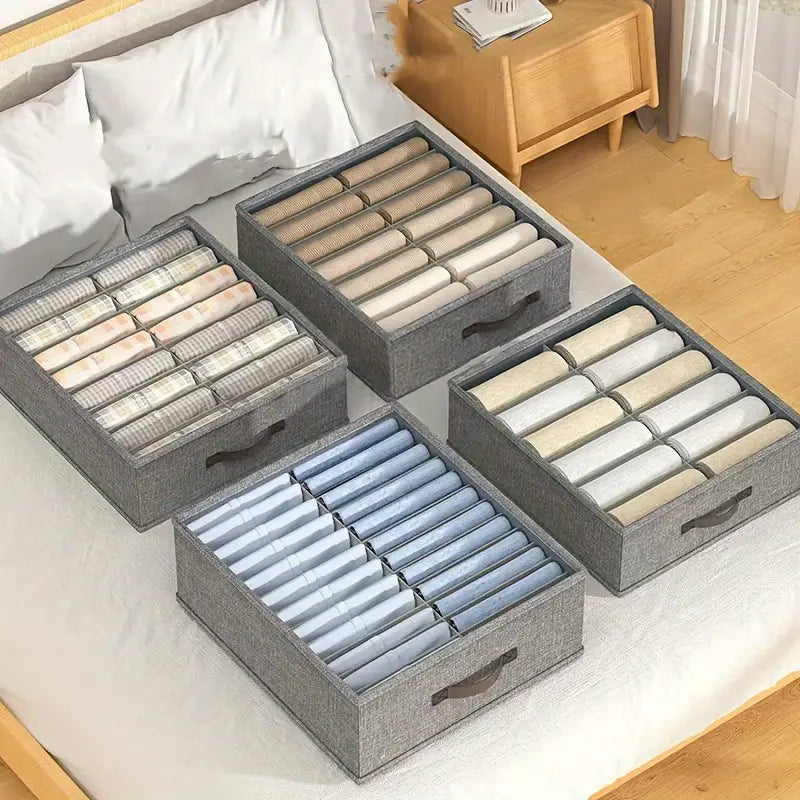 16-Compartment Foldable Fabric Clothes Organizer-Grey