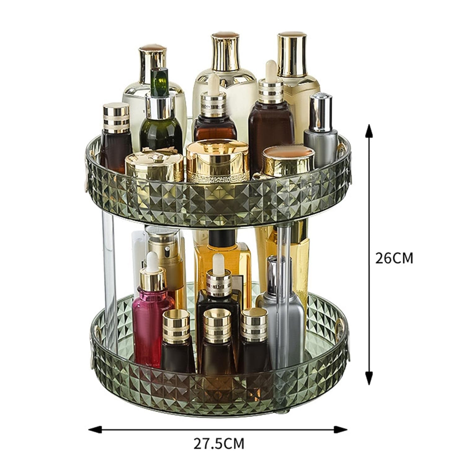 • ROTATES 360°: Each turntable operates on stainless steel ball bearings for an easy spin every time;Each tray has a handle for easy movement ; This rotating organizer makes it easy to organize and find your favorite makeup and cosmetic items quickly.