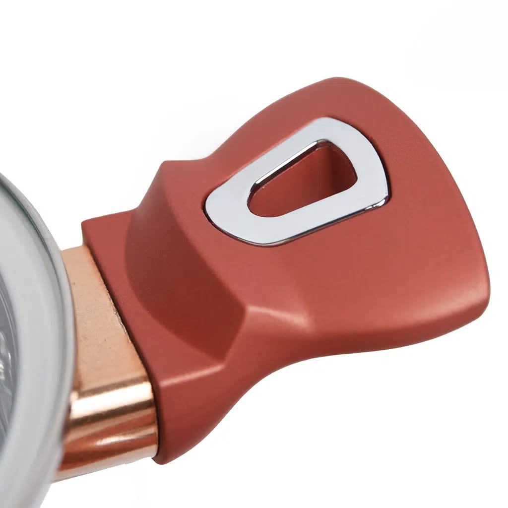 This 24cm Marble Coating with Glass Lid offers efficient and convenient cooking. Its marble Costing surface allows for easy clean-up, while the glass lid provides visibility and heat retention. With its vibrant orange color, this pot is both functional and stylish addition to any kitchen.