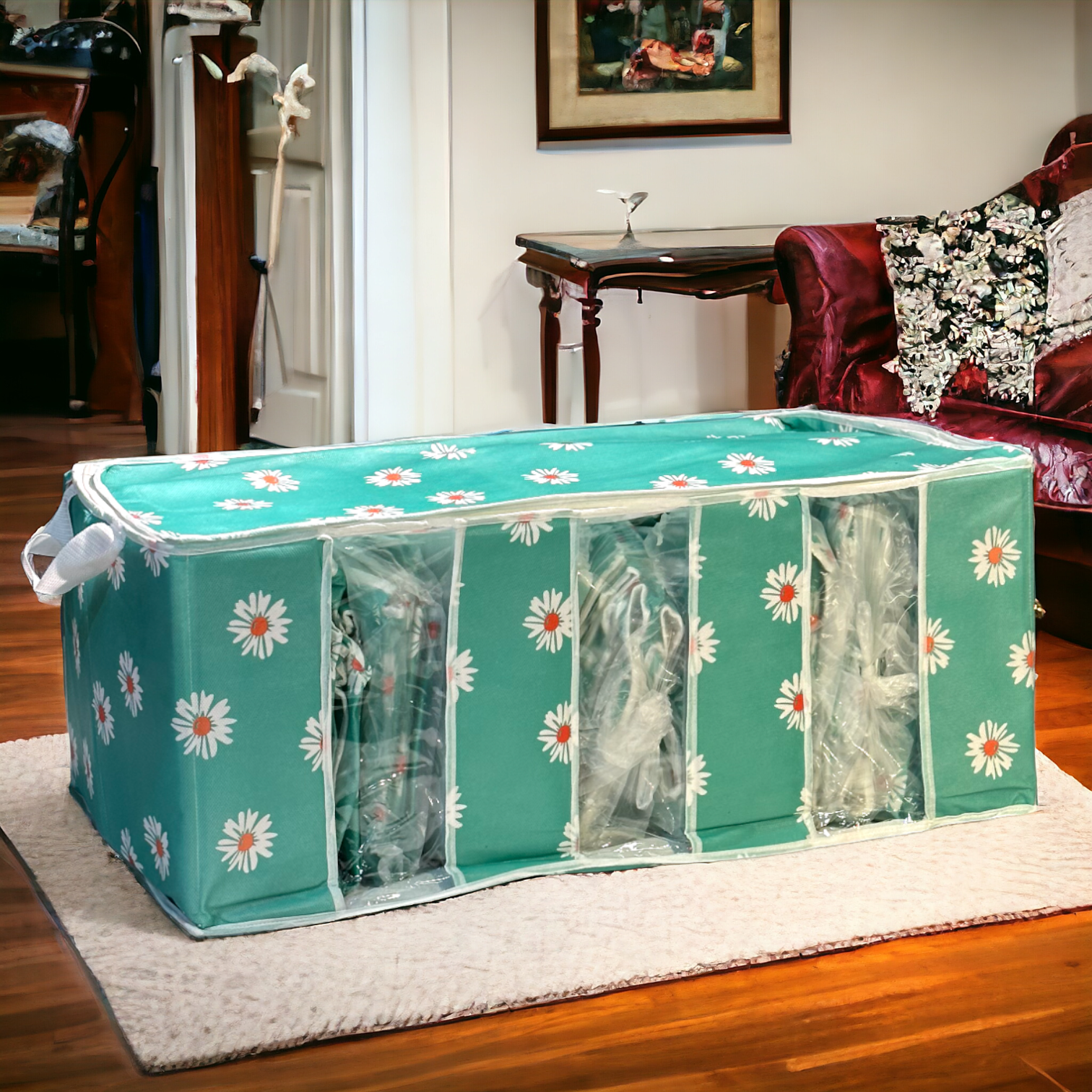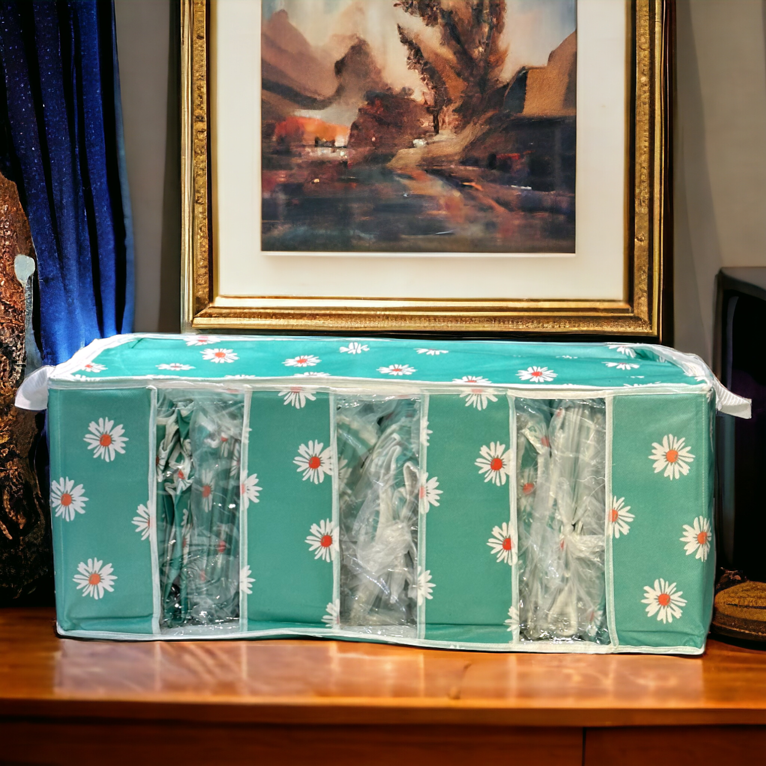 3 Compartment Bag-Green Flower Printed