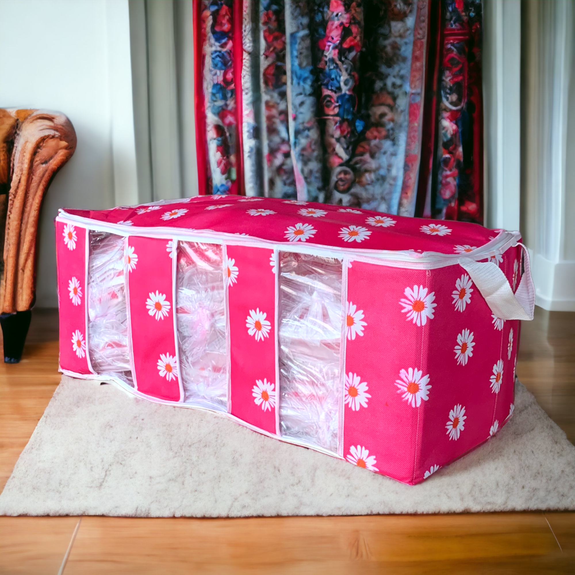 3 COMPARTMENT BAG -PINK FLOWER PRINTED