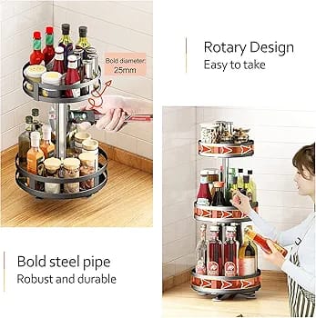 Introducing our revolutionary "360° Rotatable Metal Storage Organizer" square shapes and offered in three-layer configurations. This versatile storage solution is here to revolutionize your kitchen organization.
