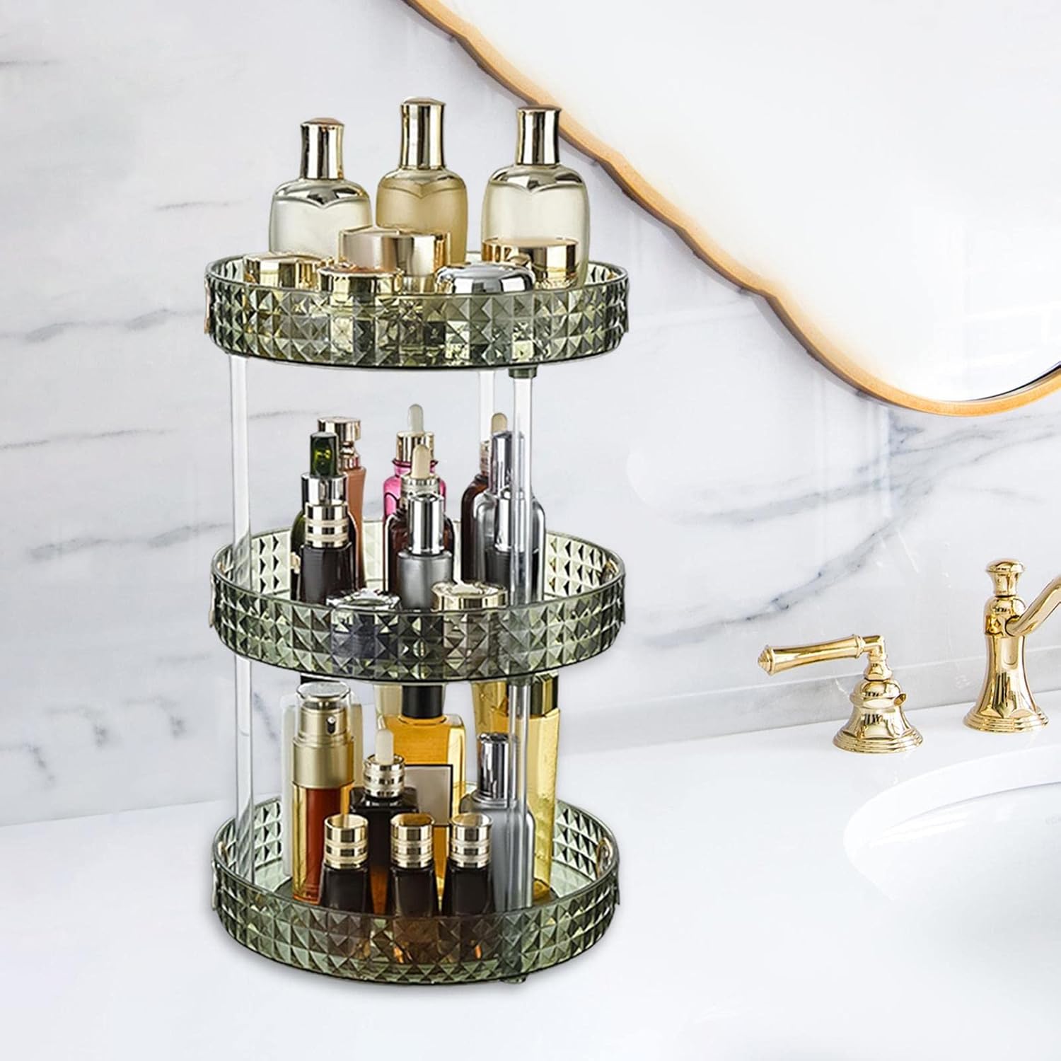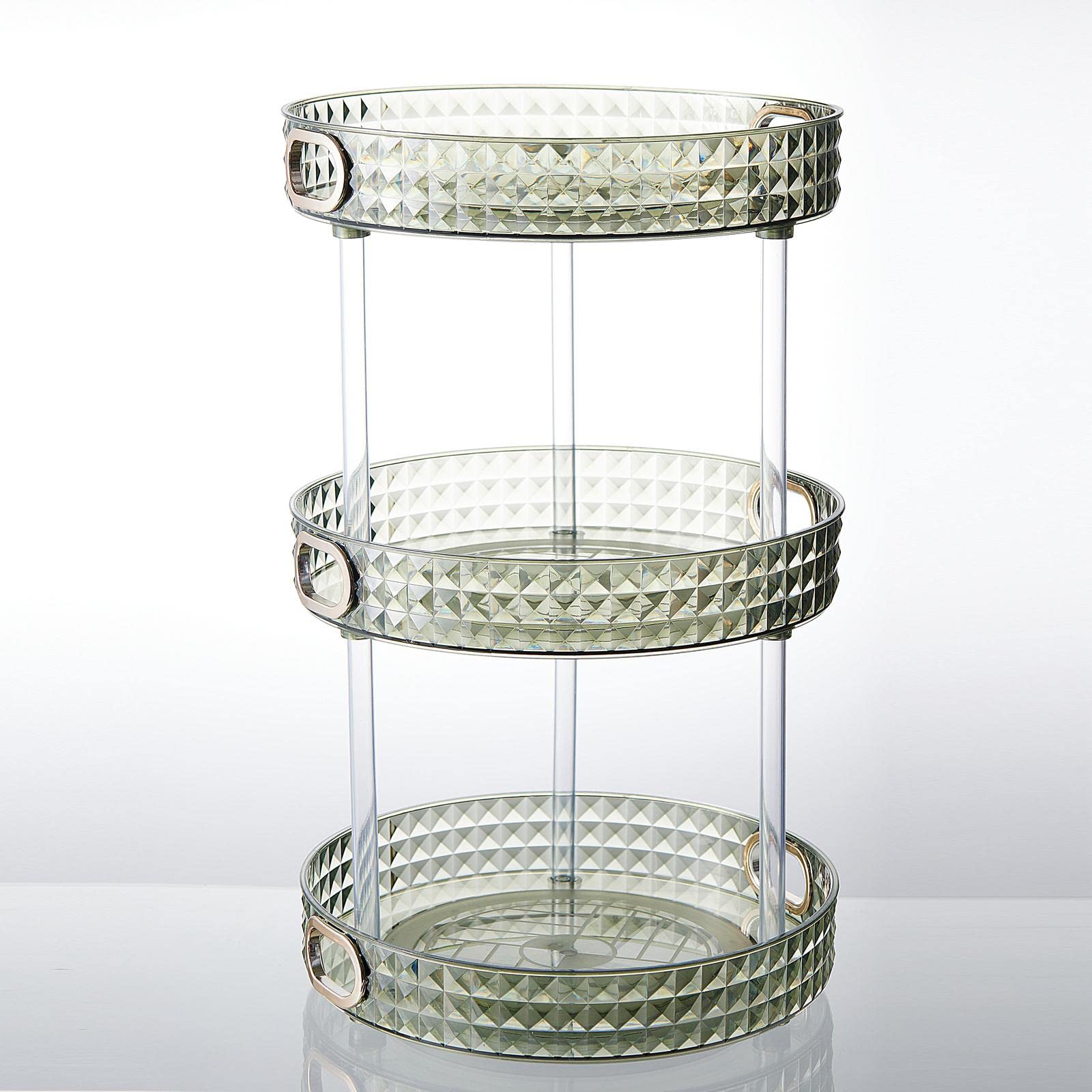• ROTATES 360°: Each turntable operates on stainless steel ball bearings for an easy spin every time;Each tray has a handle for easy movement ; This rotating organizer makes it easy to organize and find your favorite makeup and cosmetic items quickly.
