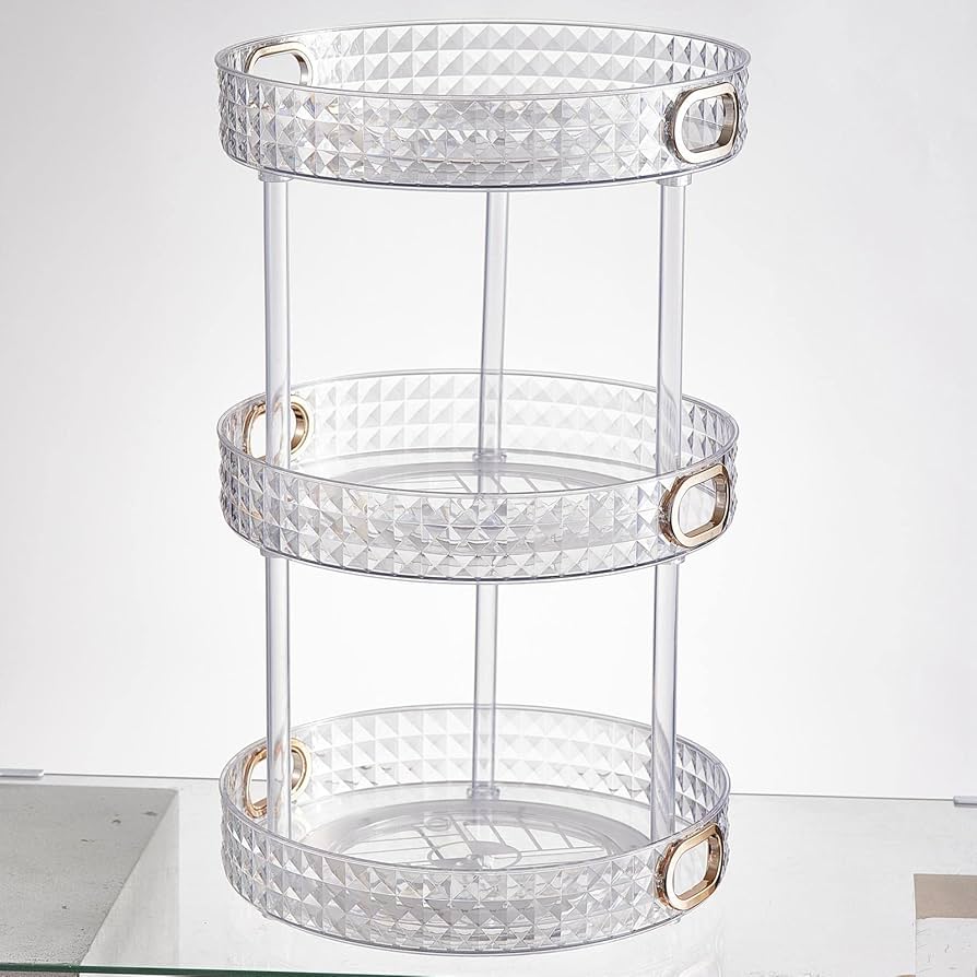 • ROTATES 360°: Each turntable operates on stainless steel ball bearings for an easy spin every time;Each tray has a handle for easy movement ; This rotating organizer makes it easy to organize and find your favorite makeup and cosmetic items quickly.