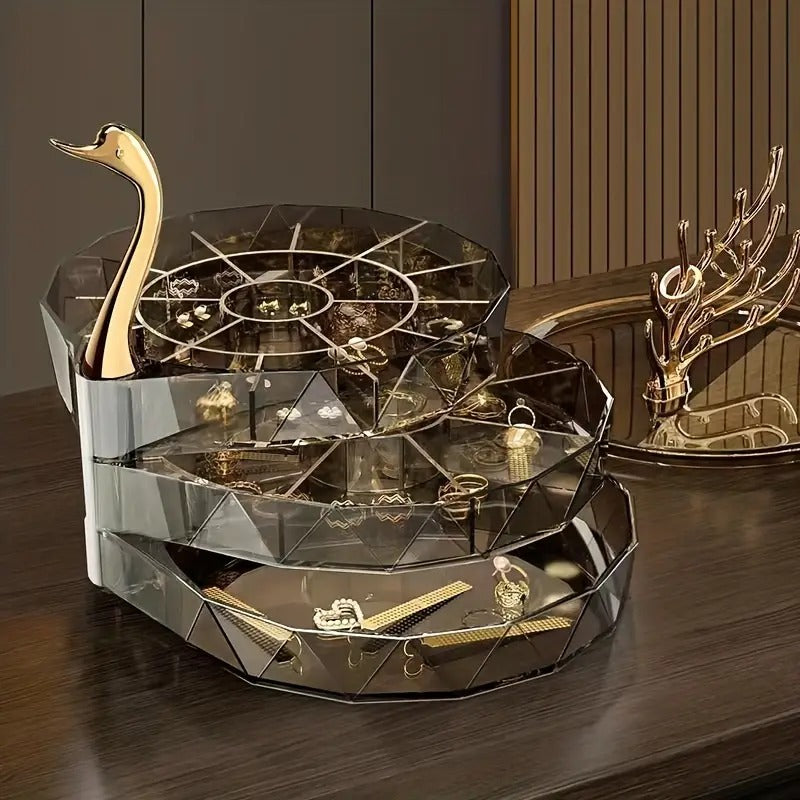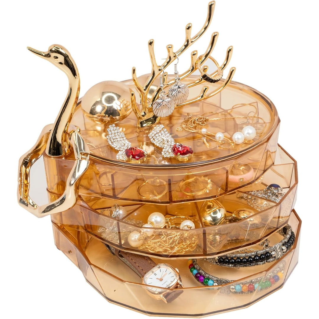 • Classified Storaged - Our multifunctional earring organizer features three layers with different compartment designs, it can store various jewelry sizes. The top is decorated with a swan to hang earrings, necklaces, rings and more. Our storage box maximizes space utilization, keeping your jewelry separated, secure, and tangles-free for easy access.
