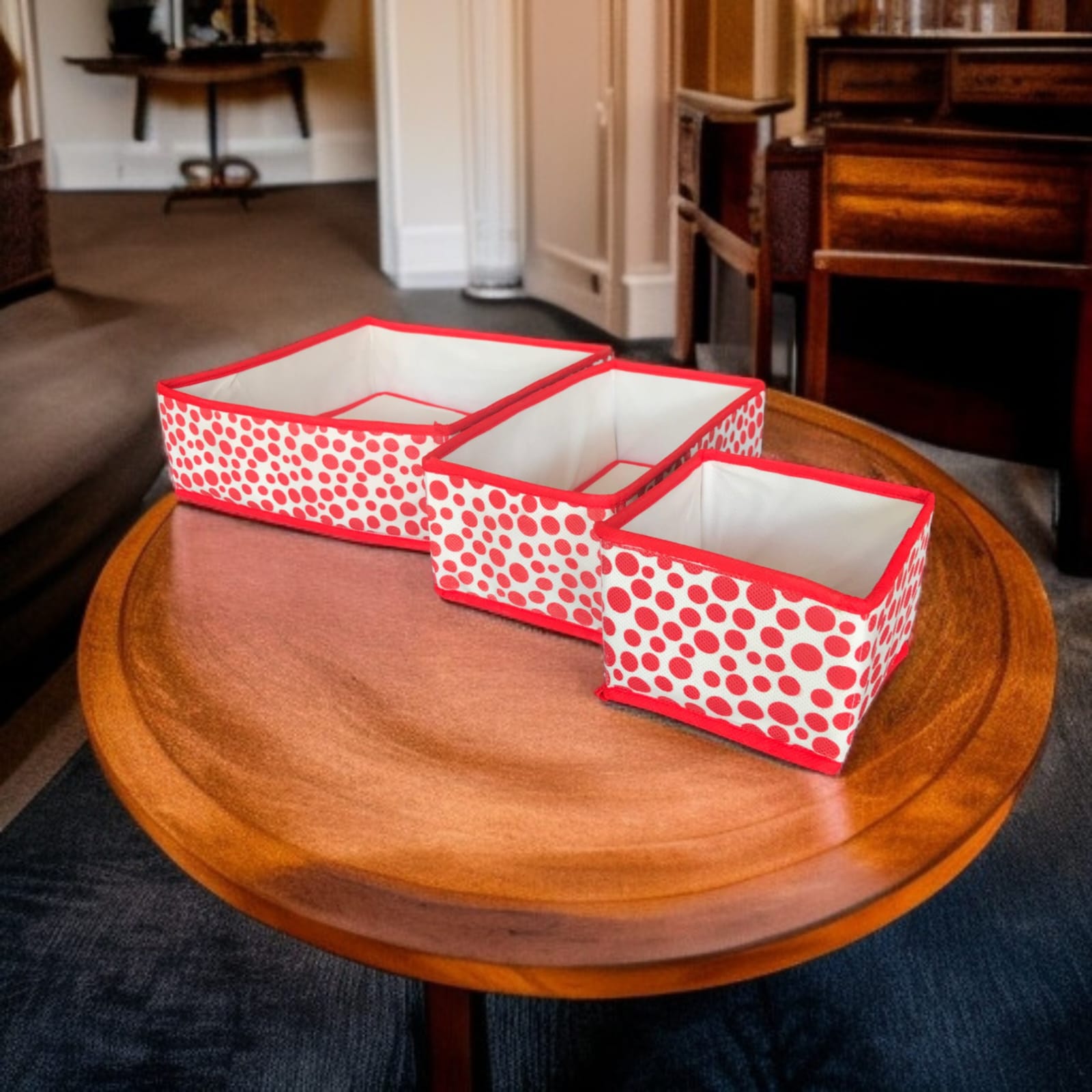 3 Pc Printed Storage Organizer Red-(Polka Dot)