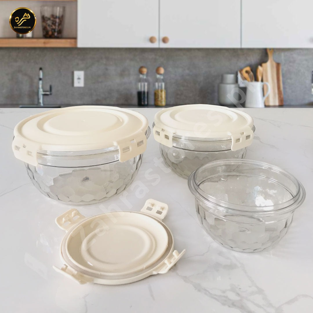 3 Pcs Air Tight Food Boxes (Light Grey)