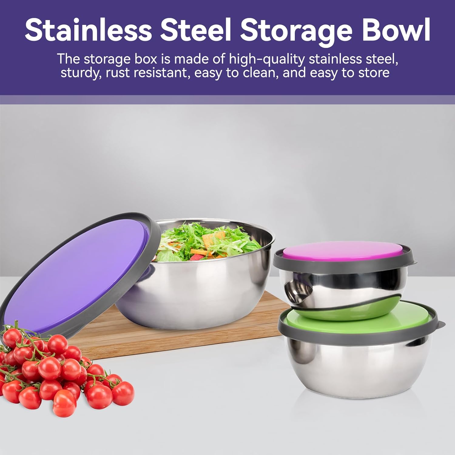 • STAINLESS STEEL PREMIUM MATERIAL: Stainless steel kitchen bowl salad bowl with lid are made of high quality stainless steel,mixing bowl is durable and rustproof,reusable.