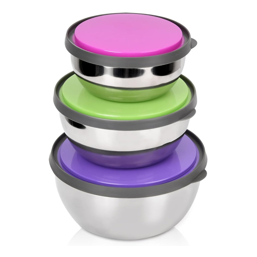•  HERMETIC LIDS: BPA-free flexible ABS lids fit perfectly on the bowls, keep food fresh,bowl with airtight lid are great for food storage, a great choice to keep food longer.