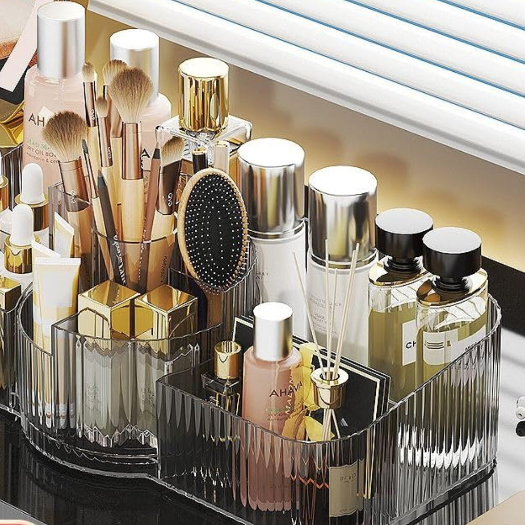 This 360° rotating makeup brush holder is a luxurious and practical cosmetic storage solution designed to keep your beauty essentials neatly organized and easily accessible. Featuring a smooth rotating base, this makeup organizer allows effortless access to brushes, lipsticks, and other cosmetics from all angles. Crafted with a stylish and elegant design, it adds a touch of sophistication to any vanity or dressing table. With multiple compartments and a sturdy build, it efficiently stores a variety of makeup items while saving space, making it the perfect organizer for beauty lovers who value both function and flair.