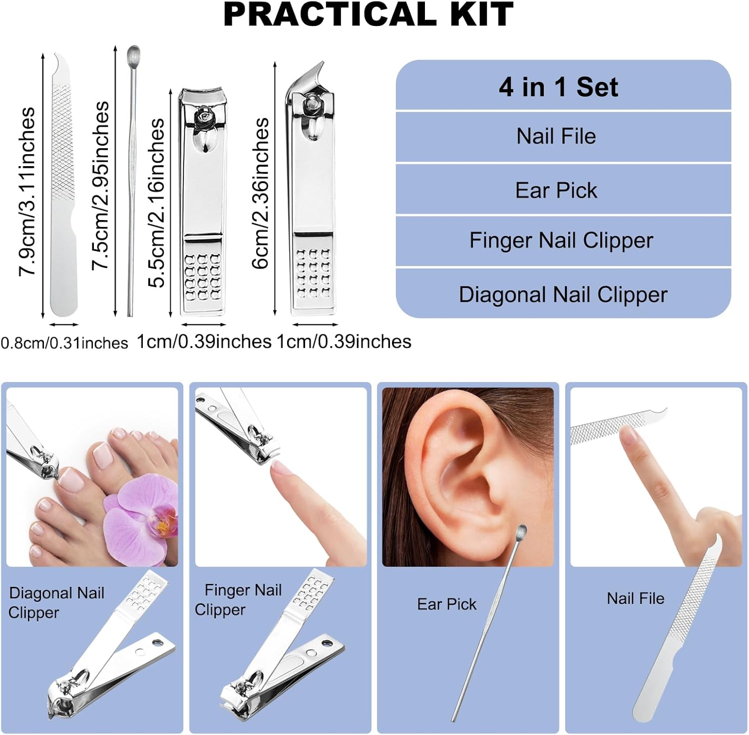 • Small and Portable:The fingernail clipper set size mentioned in last image. Lightweight and compact, can be stored in multiple places or carried around, can be placed in the home, backpack, car, office, luggage, etc.