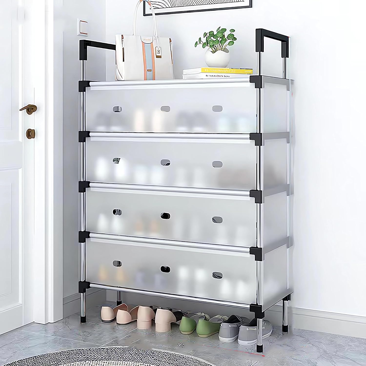 • *Free combination:  The vertical shoe rack is convenient to place in the gaps or corners to save space.