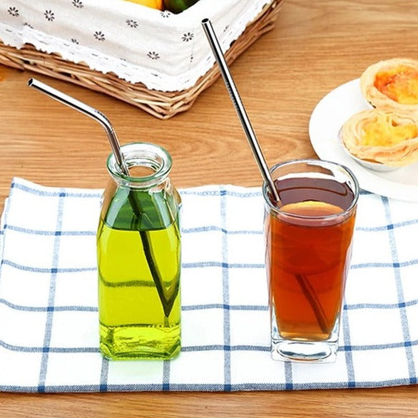 • REUSABLE METAL STRAWS: Our metal straws offer an eco-friendly alternative to plastic straws. A pack of 4 comes with two bent and two straight straws along with a cleaning brush use, clean, and repeat as many times as you want.