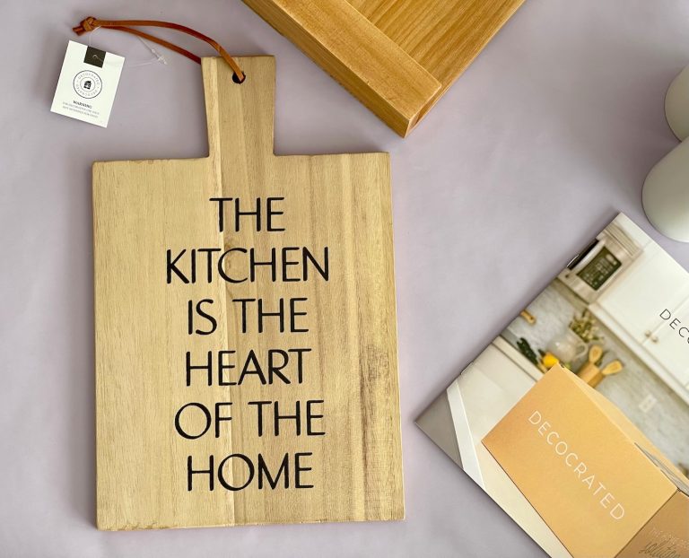 The stand features text that reads, "THE KITCH IS THE HEART OF THE HOME."