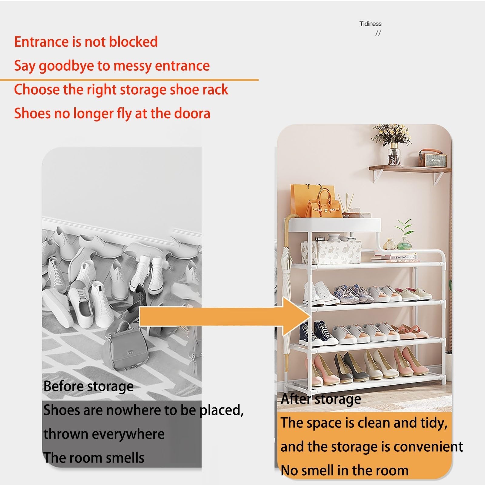 Optimized Storage-- On the top of the open shoe cabinet is a storage box, which can store your bags, keys, books, and umbrellas.