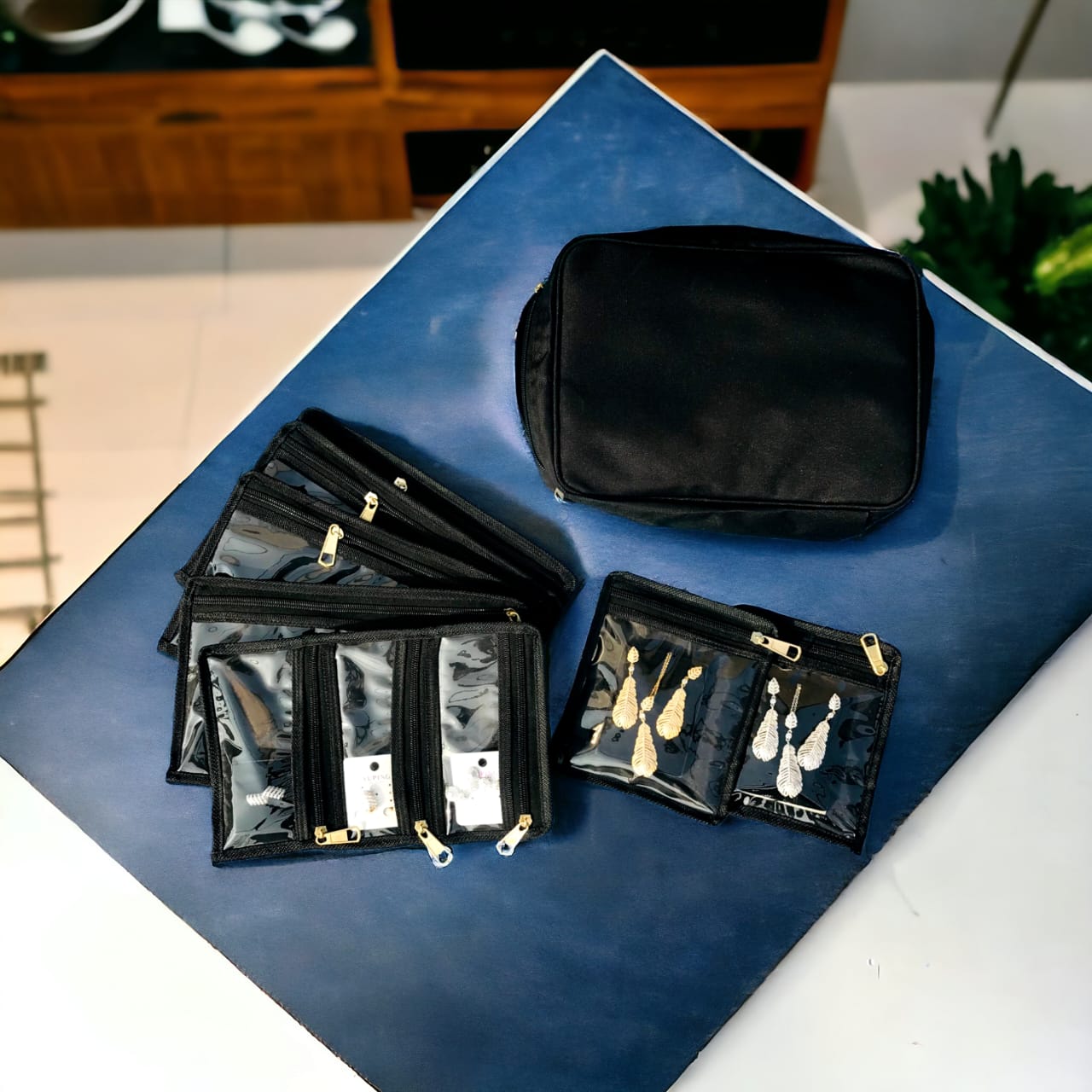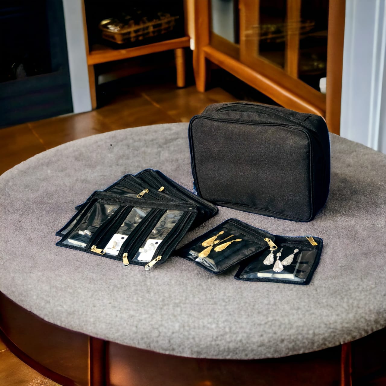 Jewelry Organizer Bag with7 Zip Pouches .