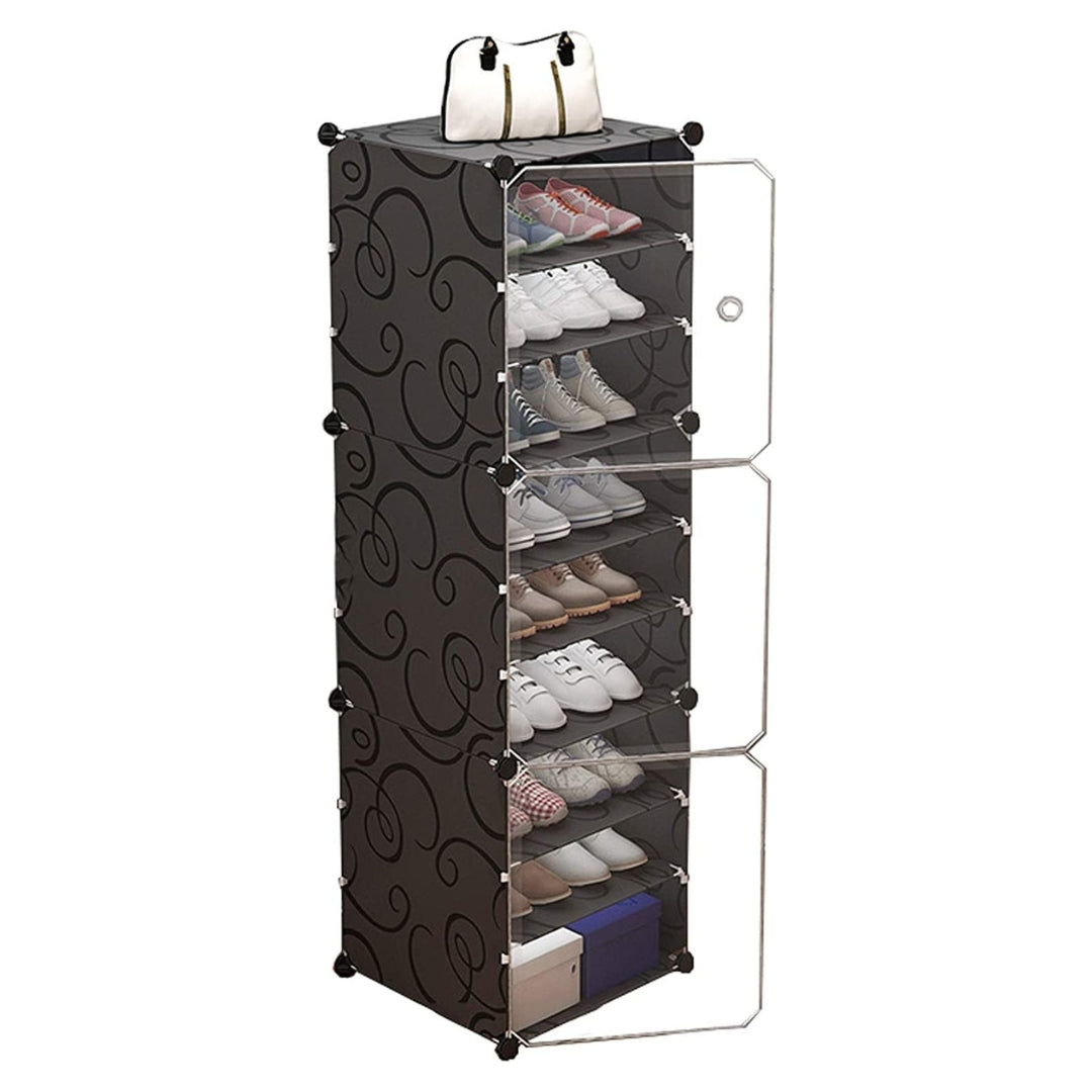 • 【EASY TO ASSEMBLE】Free DIY, and the shoe rack with cover is easy to assemble and disassemble in a brief time with detailed installation manual provided. Multi-angled plastic ABS connectors are included to assemble your modular cabinet; it is recommended to using a pair of gloves to protect the hands from getting scratched or harmed while attaching the panels with the connectors.
