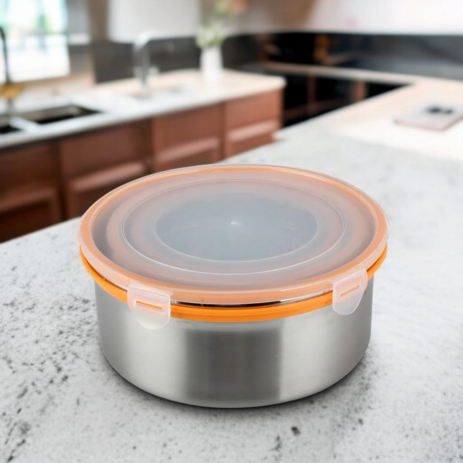 The image shows a set of "Multi meal Stainless Steel Storage Box" food containers.