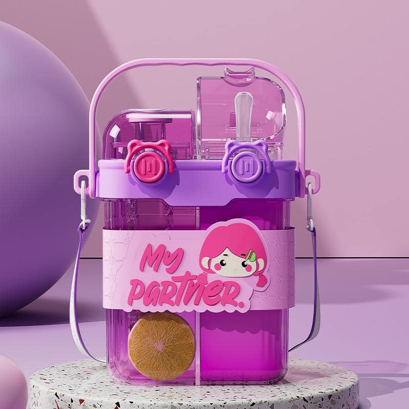 This 760ml cute children's cartoon plastic water bottle is perfect for students, featuring a portable handle and straw design. It supports direct drinking and is made of eco-friendly PC plastic, suitable for various occasions like school, travel, and outdoor activities.