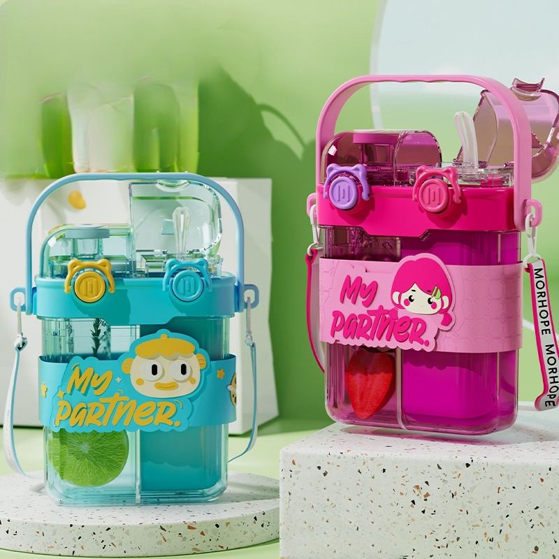 This 760ml cute children's cartoon plastic water bottle is perfect for students, featuring a portable handle and straw design....