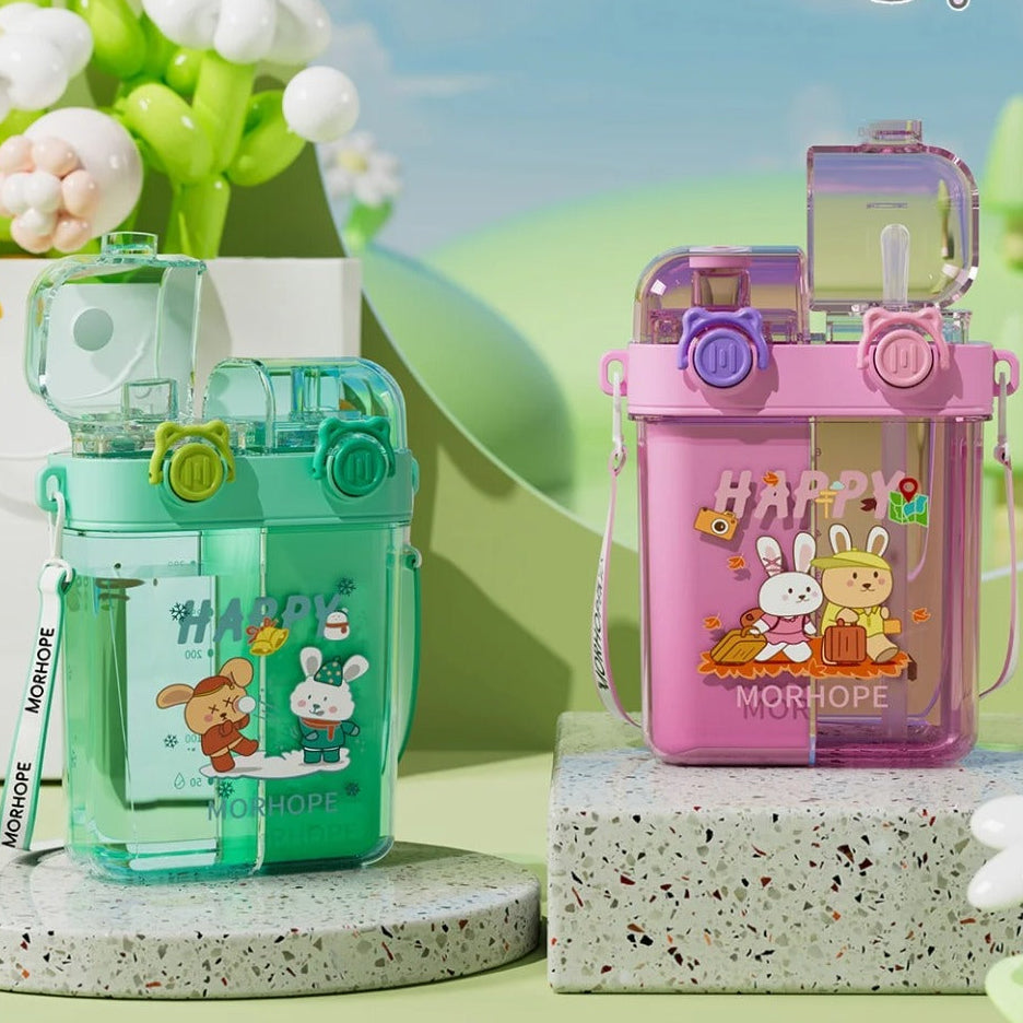 Large capacity double drink plastic cup with straw Creative square portable design Ideal for outdoor, sports, and...