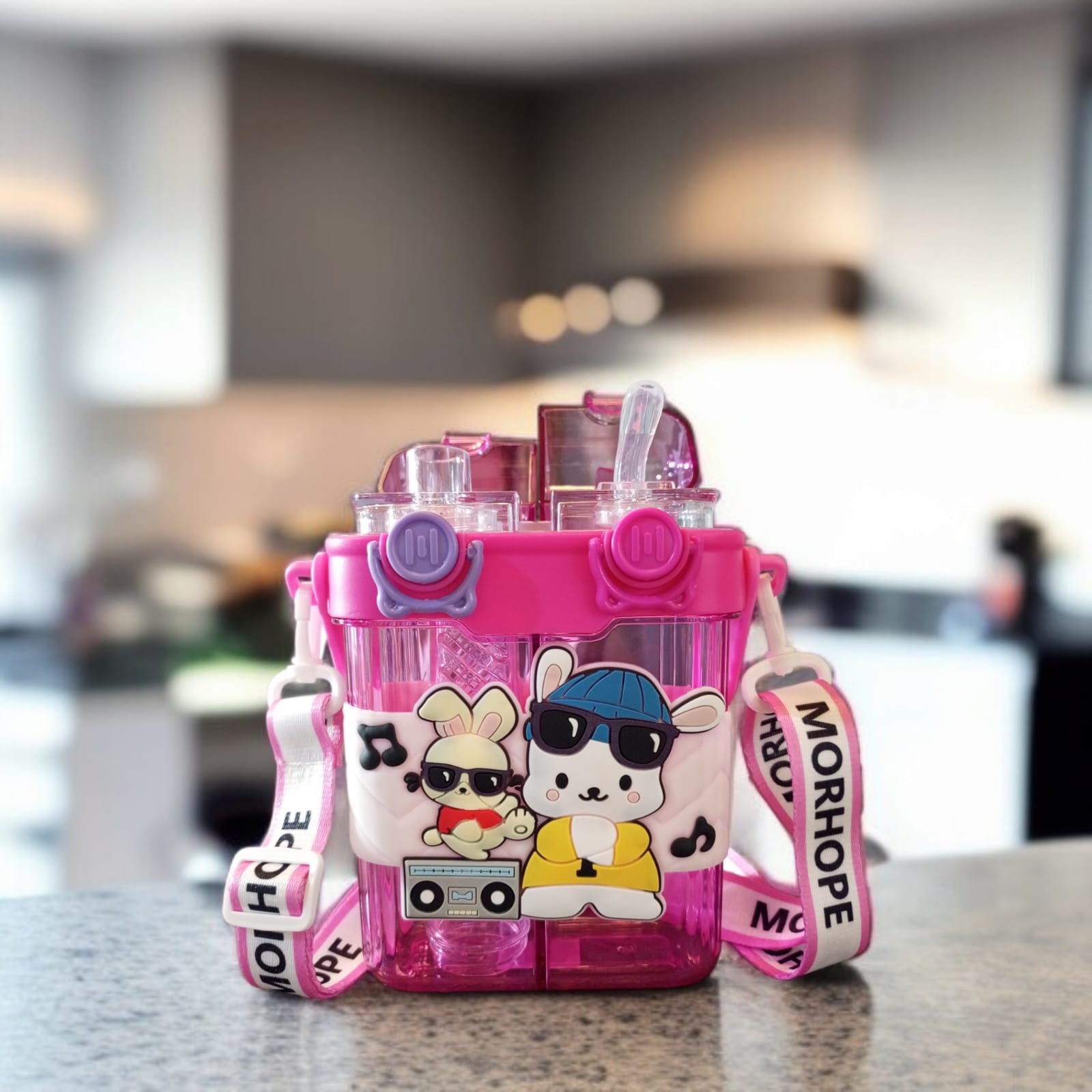 Double Drinking Water Bottle with Straw and Strap-Pink