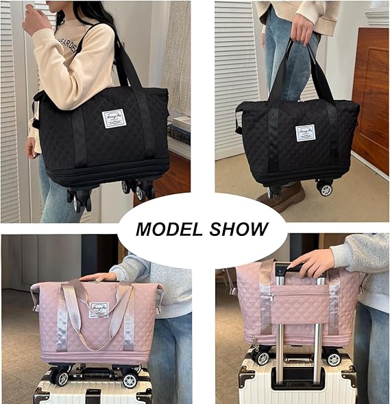 Expandable Duffel Bag with Rolling Wheels-Black
