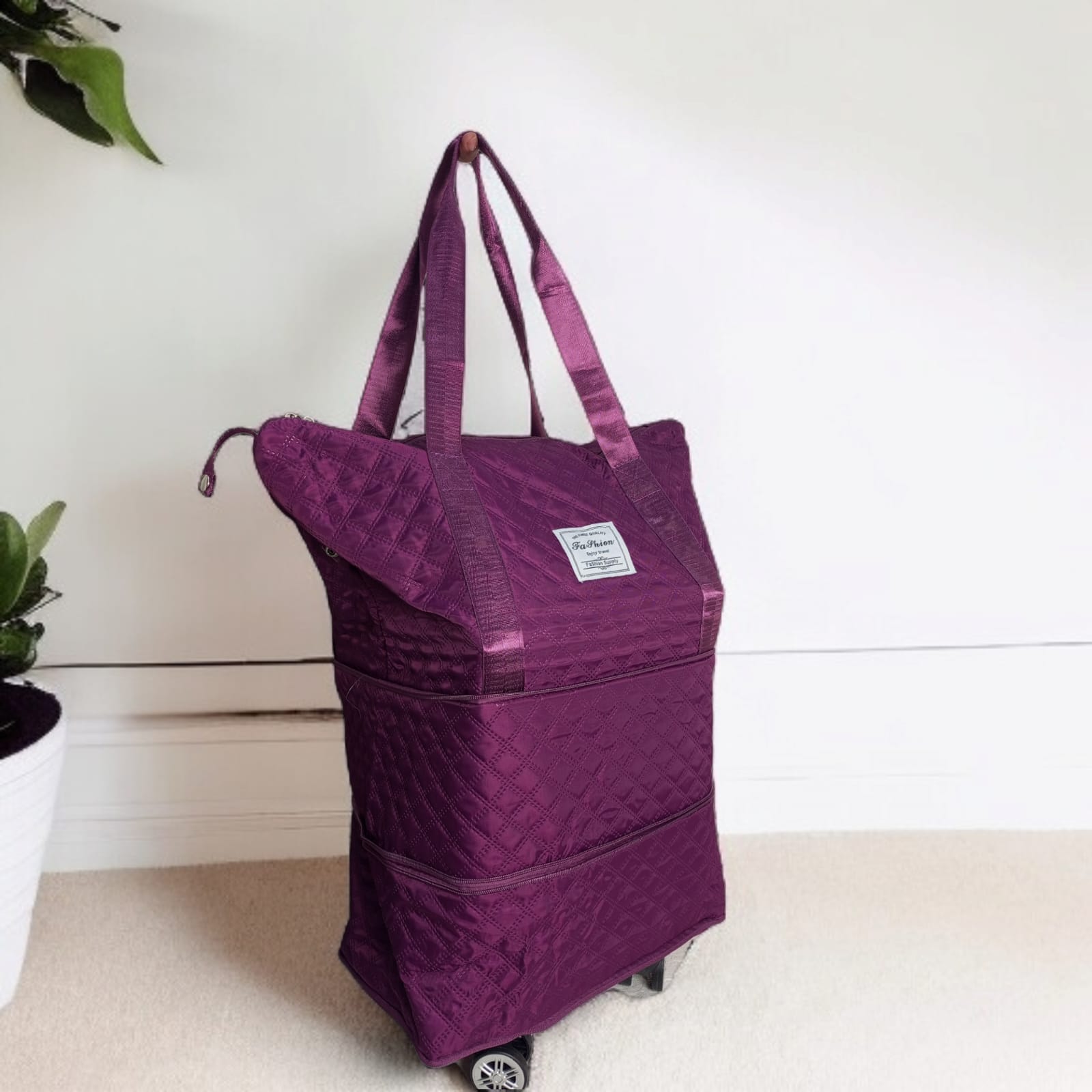 Expandable Duffel Bag with Rolling Wheels-Dark Purple