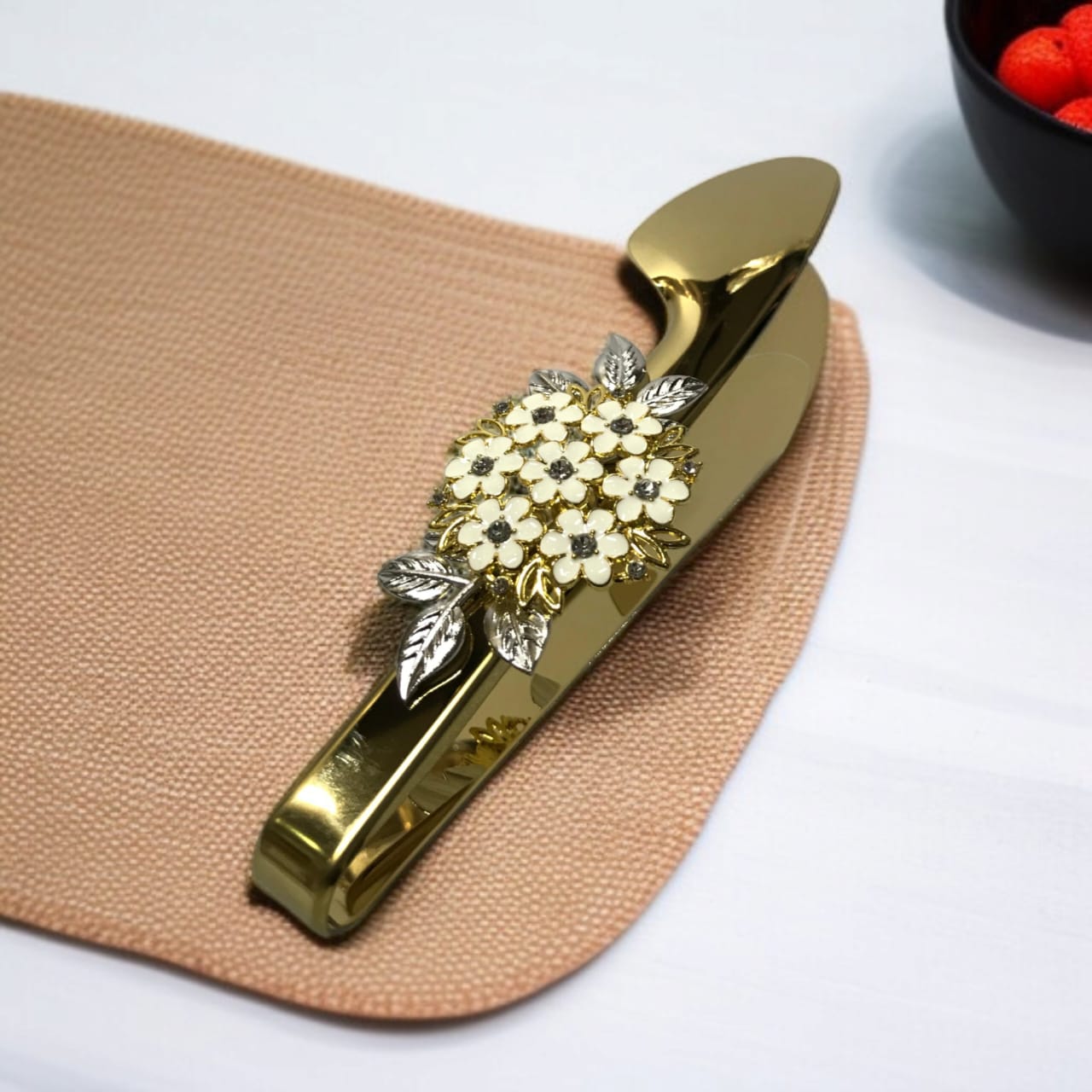 Golden Serving tong  High Quality Stainless Steel Golden Finishing Flower Design Handle Size Length 23 cm
