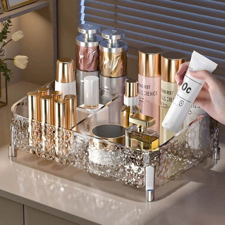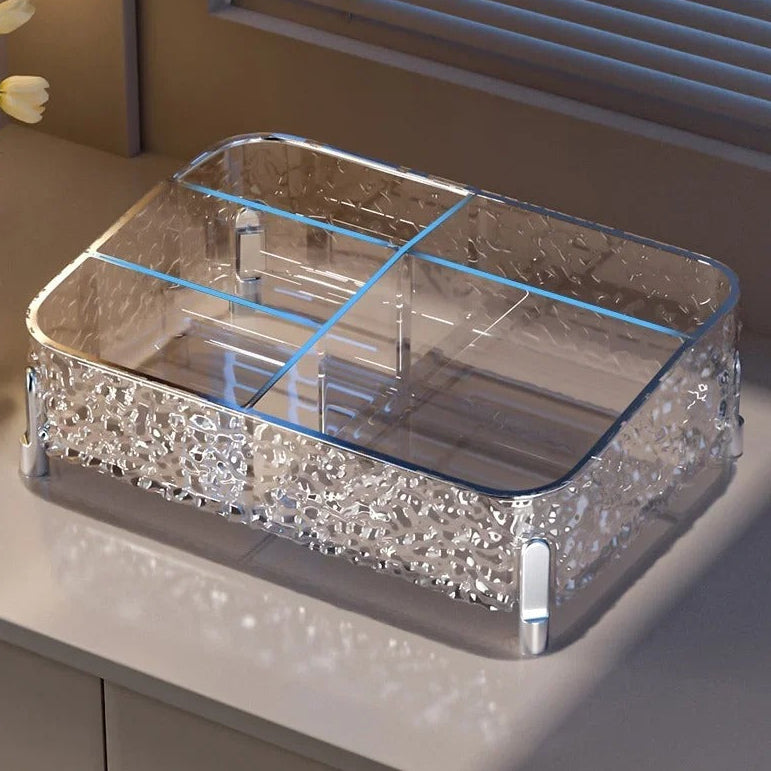 Keep your beauty products and makeup organized and easily accessible with our Acrylic Makeup Vanity Organizer. Made of durable and transparent acrylic, this organizer provides a stylish and clutter-free solution for your vanity. Its multiple compartments and drawers allow for efficient storage and easy access to all your essentials.