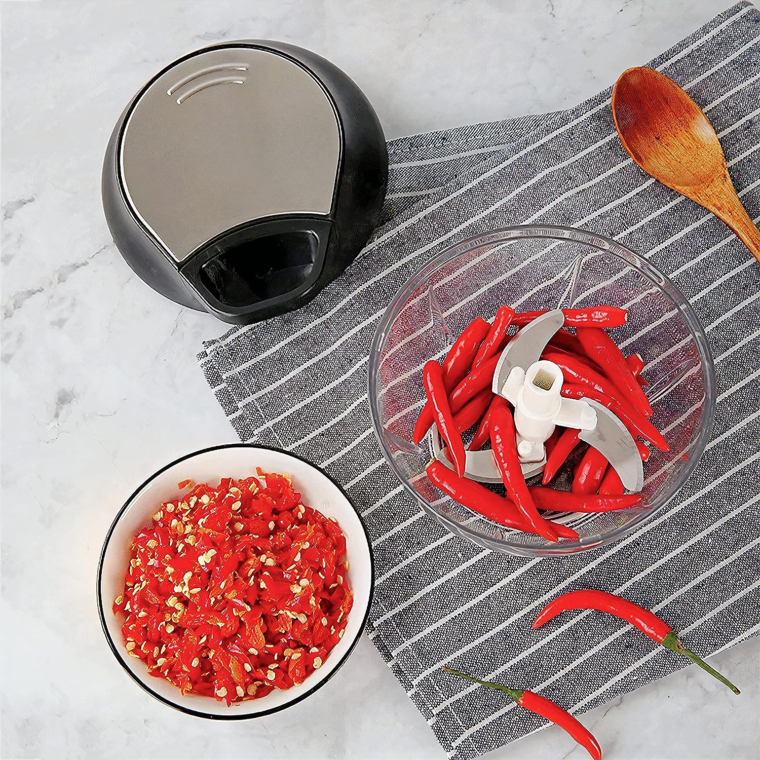 Safe Material Mini Chopper: The pull dicer free plastic, the blades are made from  stainless steel. Multipurpose...