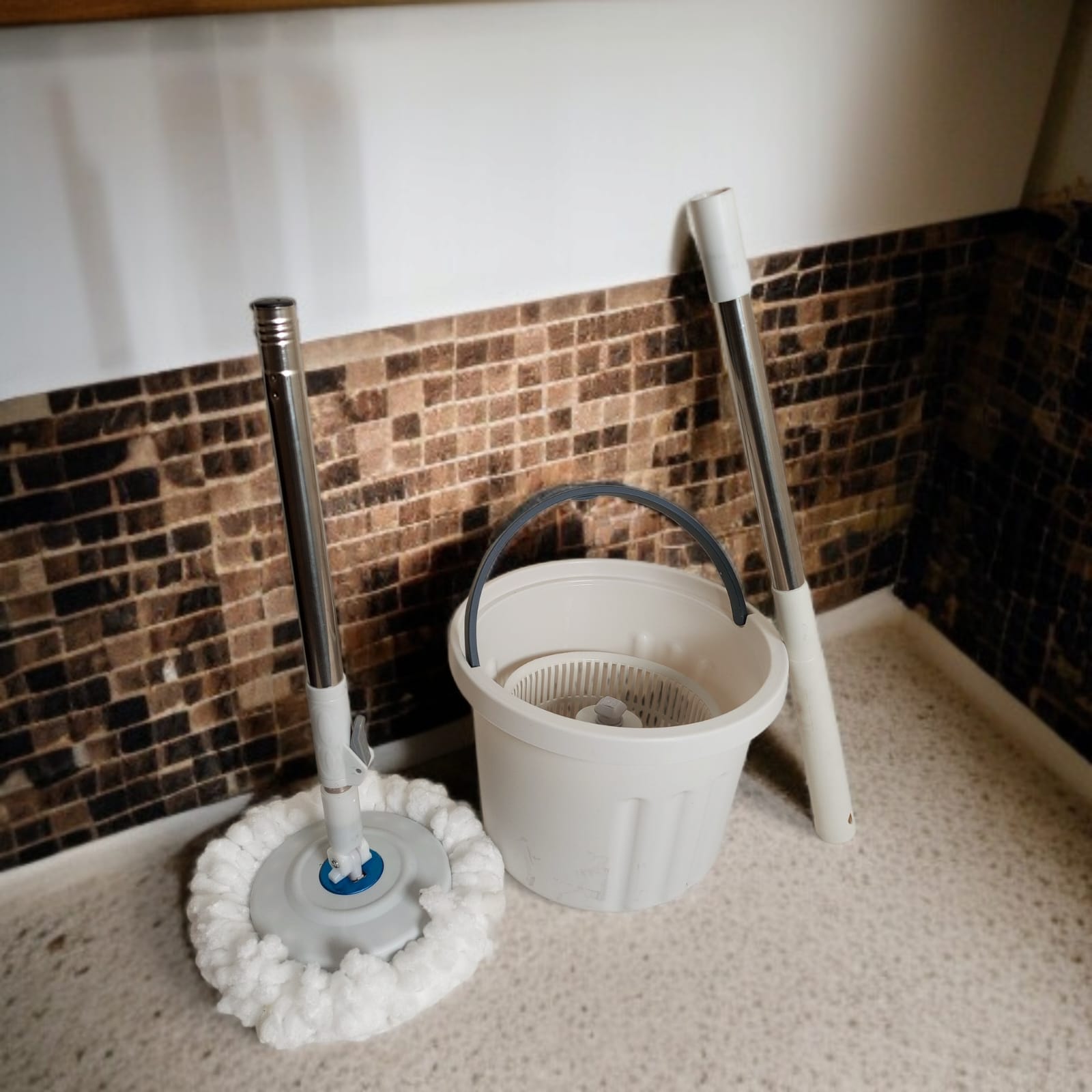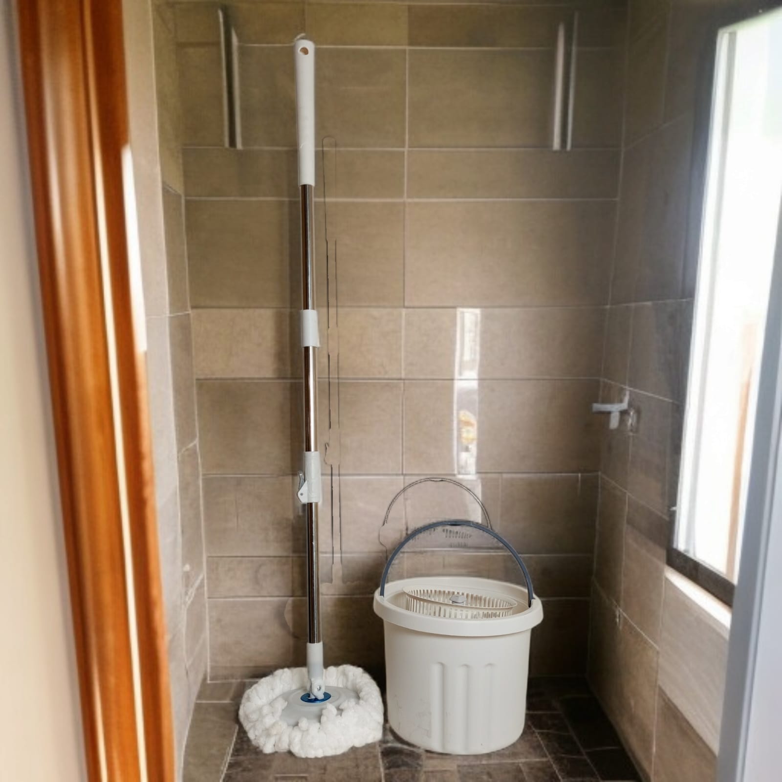 Hands-free operation: Features a self-cleaning/wringing mechanism in the bucket that allows for cleaning and drying the mop head without using hands