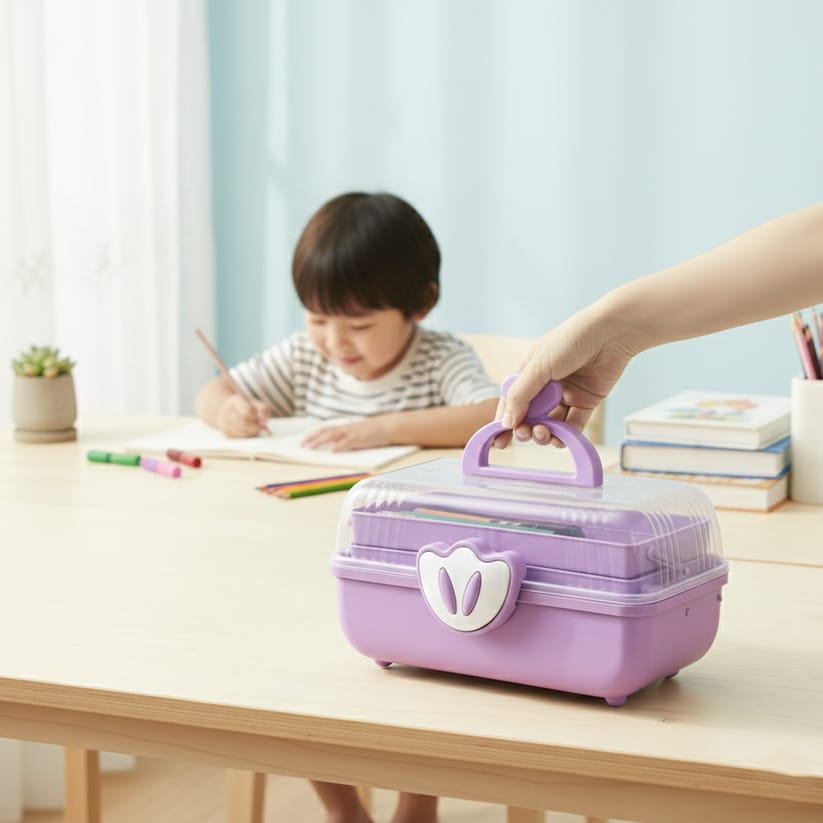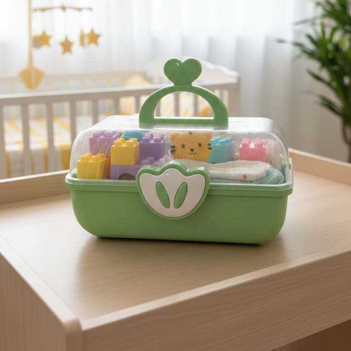 The CuteHeart Kids Multi-Layer Storage Box is a charming and practical organizer designed to keep small essentials neatly arranged and easy to find. Crafted from durable plastic, it features a smart multi-layer, fold-out design that opens smoothly to reveal multiple compartments. The adorable heart-shaped handle adds a playful touch while making it easy for kids to carry. Compact yet spacious, this storage box is perfect for organizing jewelry, hair accessories, stationery, craft items, or everyday small essentials—making organization fun and effortless.