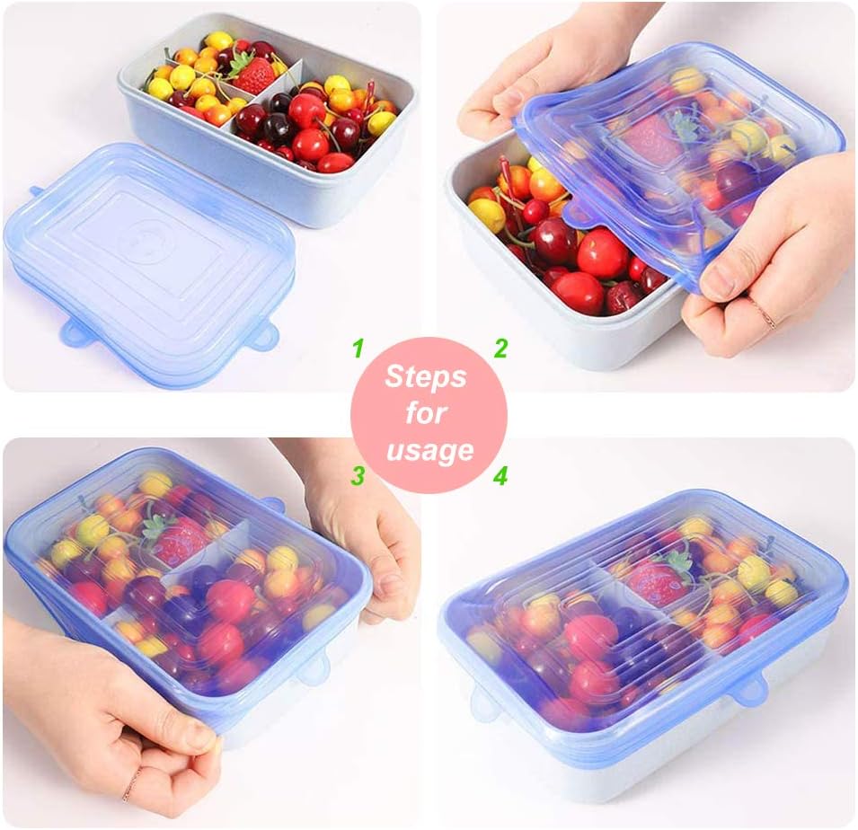 • Durable & Reusable - These food-grade silicone container lids are super flexible and tear-resistance, durable for stretching repeatedly. They are also easy to clean, you can just rinse them with warm soapy water or throw them in the dishwasher. These rectangle silicone food lids are a perfect complement for the disposable plastic wrap which can help you save a lot!