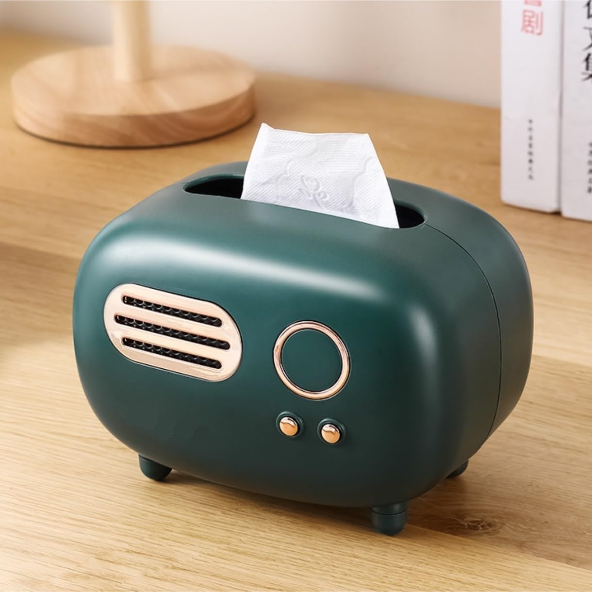 • The tissue box in the shape of a retro radio, with electroplated gold trim, is not only a tissue box, but also a perfect decoration.