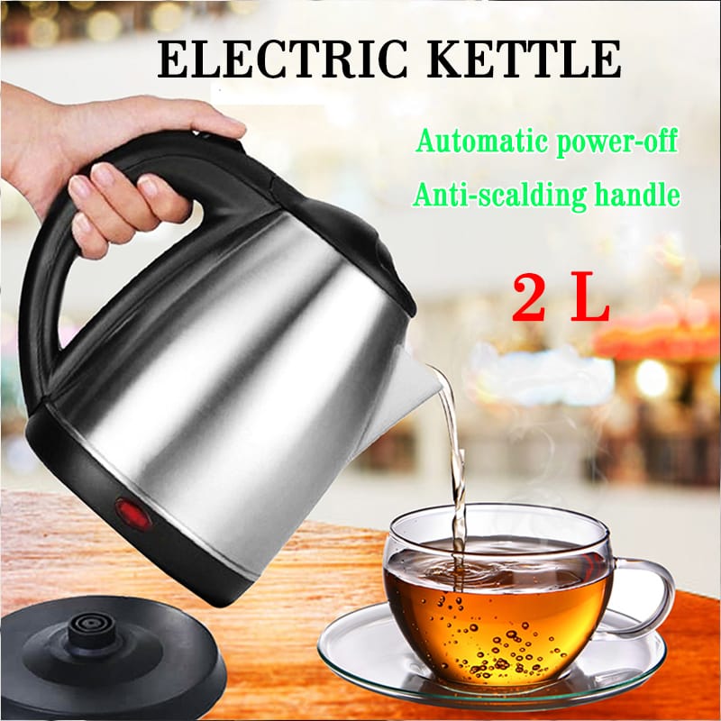 • : Electric water kettle has built in dry boil and auto shut off guard technology that automatically shuts off when the water reaches boiling point or when there is no water in the kettle.
